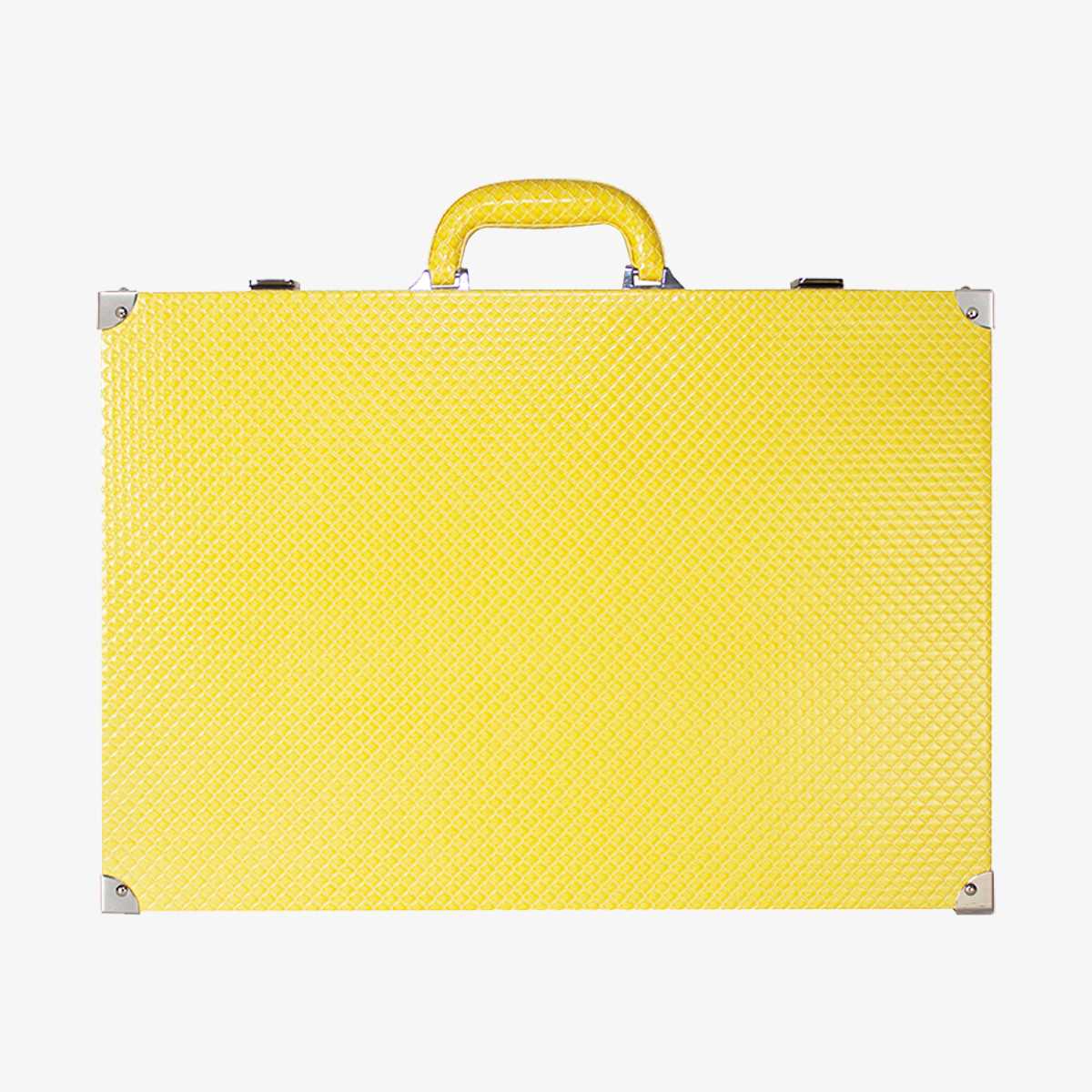 Our Lemon Yellow backgammon set with Snake Skin pattern is carefully crafted with vegan leather, premium checkers and dice, and our signature VIDO doubling cube made of genuine crystal.
